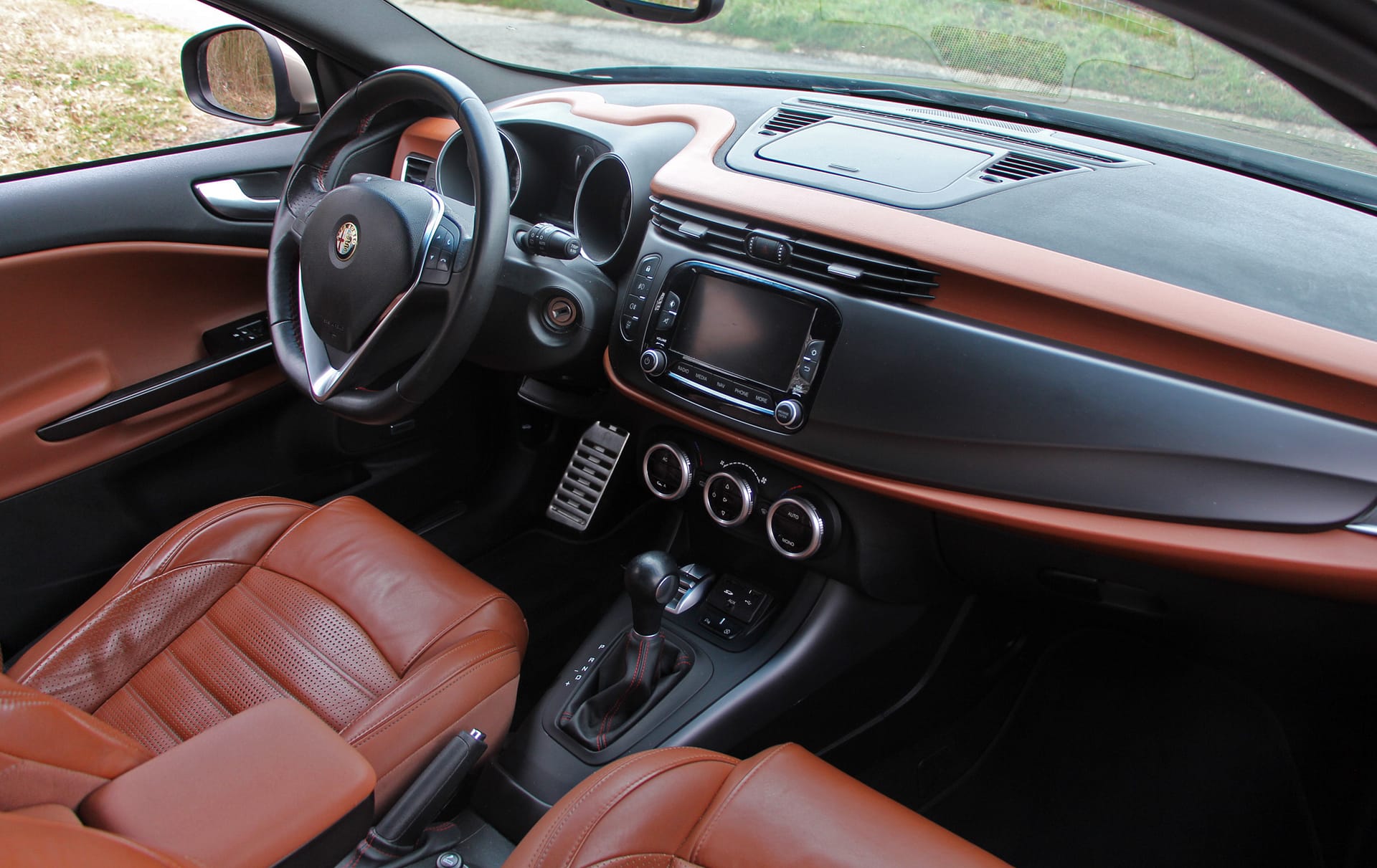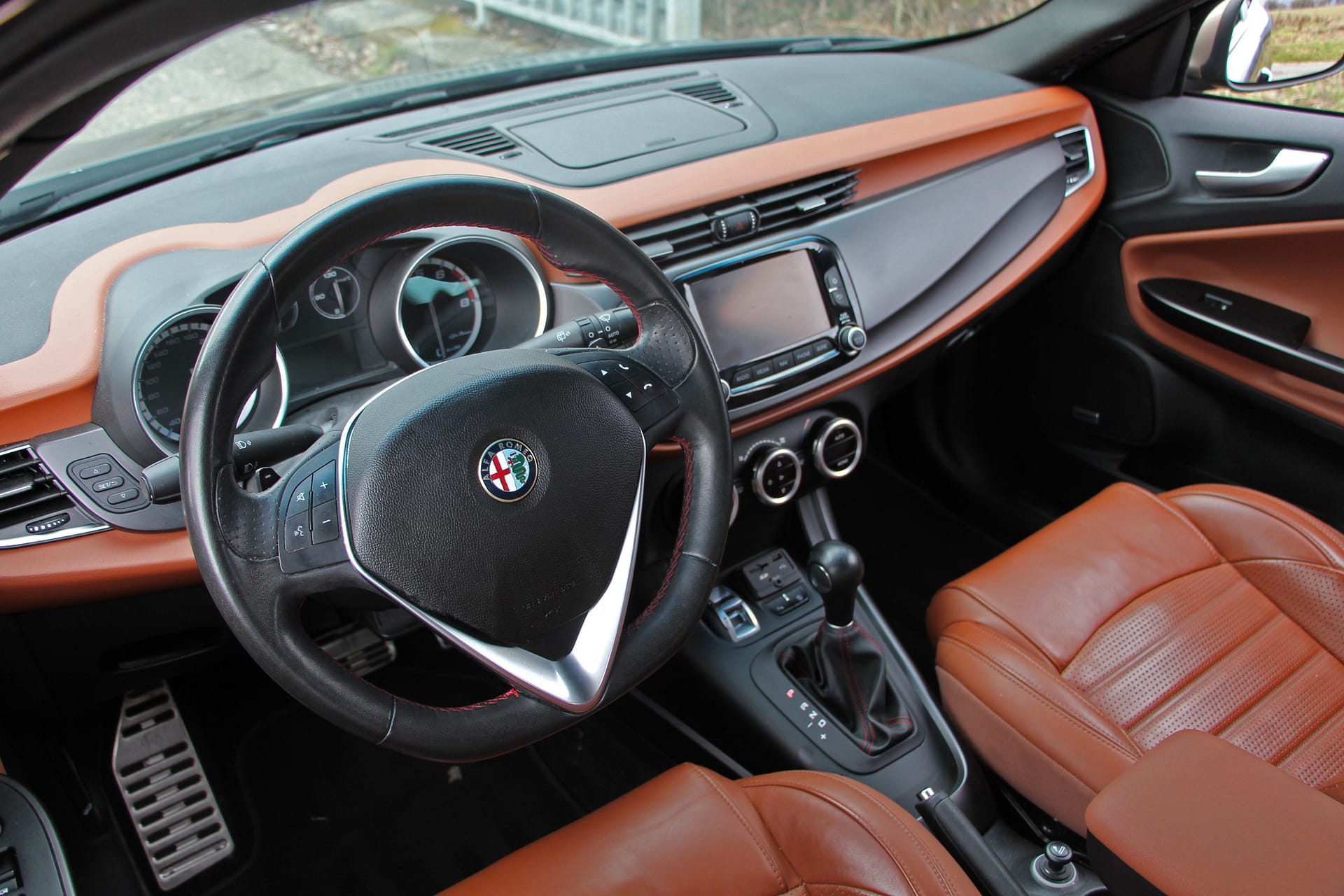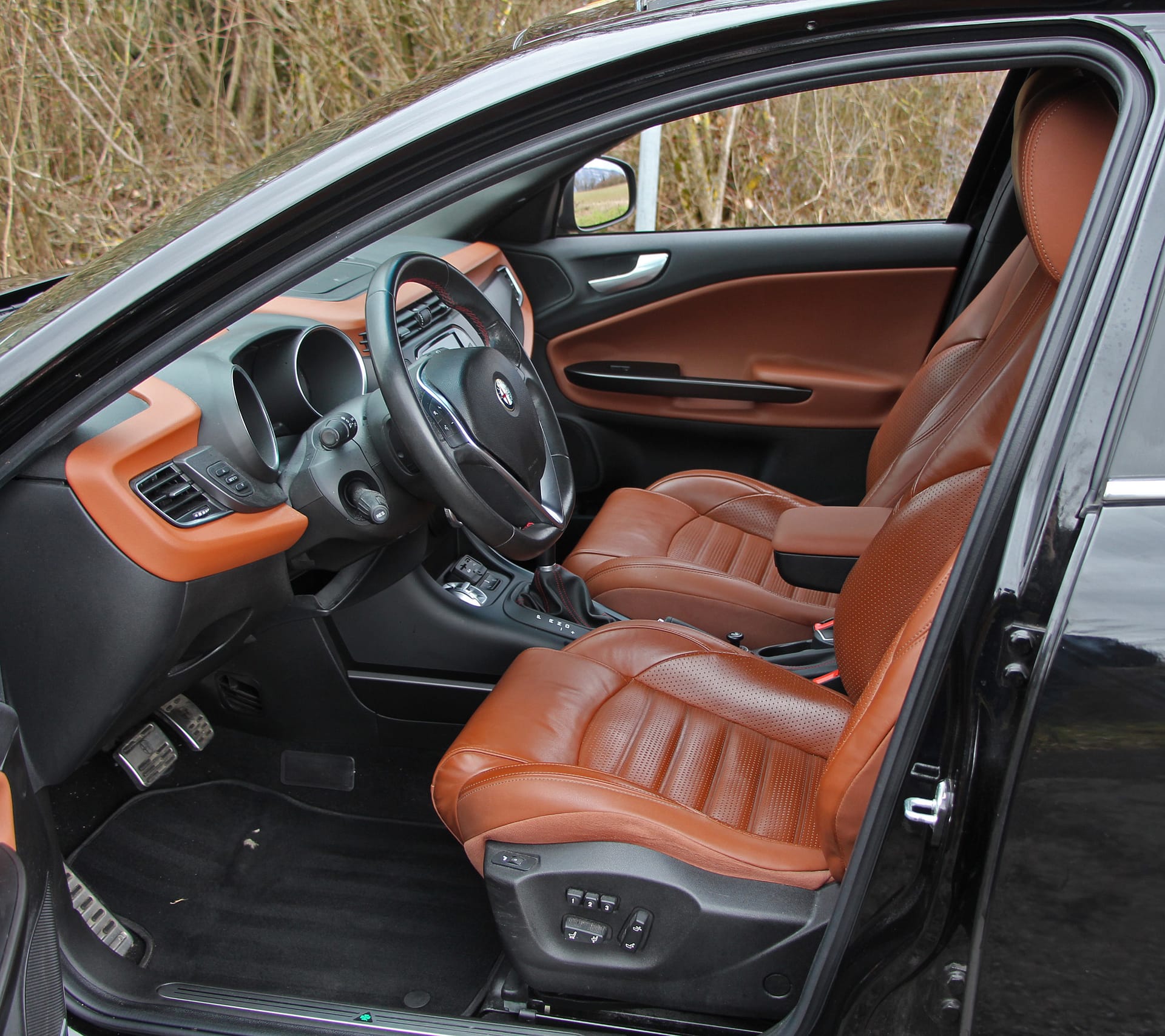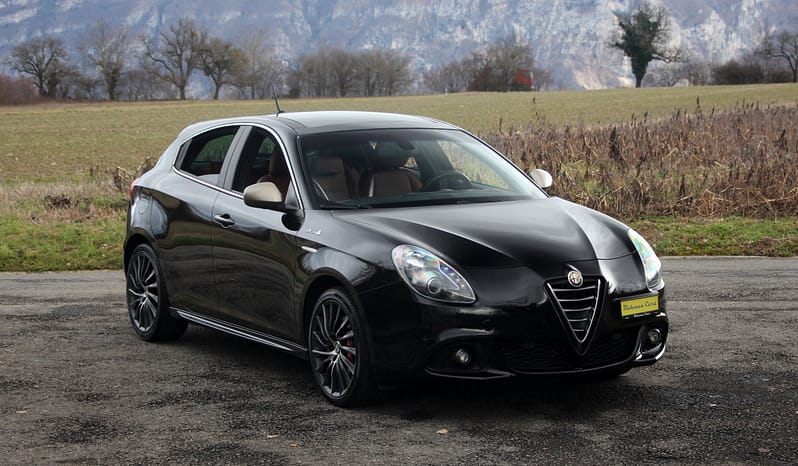Superbe Alfa Romeo Giulietta 1.4 TB (version 170 CH), véhicule CH avec carnet de service complet (distribution remplacée). Agencement de couleurs très sympa : Noir, intérieur cuir brun. Équipement très complet, dont le toit ouvrant & panoramique à l’arrière, les sièges chauffants, électriques à mémoire pour le conducteur, la navigation, la radio DAB, le pack QV-Line, les jantes 18’ origine. Expertisée du jour, elle dispose également d’un jeu supplémentaire de roues hiver !