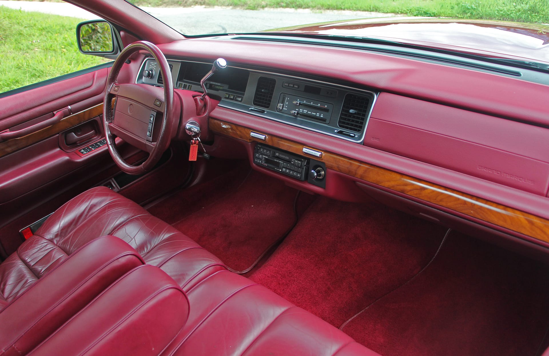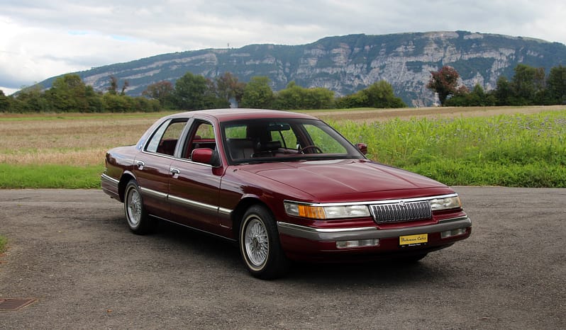 Exceptionnelle Ford Mercury Grand Marquis GS, berline américaine emblématique des années 80-90, affichant un état de conservation remarquable. Documentation complète (+ dossier de factures), seulement 84’000 km d’origine. Héritière directe des grandes traditionnelles « full-size sedans » américaines, la Grand Marquis incarne le confort princier, l’espace généreux et le raffinement typiquement Mercury, tout en offrant la prestance d’une véritable icône routière. Ce modèle se distingue par sa présentation dans l’élégant coloris d’origine Medium Cranberry Metallic, une teinte rare et recherchée qui met superbement en valeur ses lignes classiques et son allure imposante. L’intérieur, spacieux et soigné, reflète parfaitement l’esprit de luxe feutré qui caractérisait les Mercury de cette époque. Sous le capot, le V8 4.6 délivre sa puissance avec une souplesse et une sérénité incomparables, associé à une boîte automatique qui assure une conduite fluide et détendue, fidèle à l’esprit « cruising » américain. Un modèle rare sur le marché européen, à la fois attachant et chargé d’histoire, idéal pour les amateurs d’automobiles de collection en quête d’une grande berline authentique, symbole d’une époque où la route se vivait avec élégance et confort, expertisée vétéran !