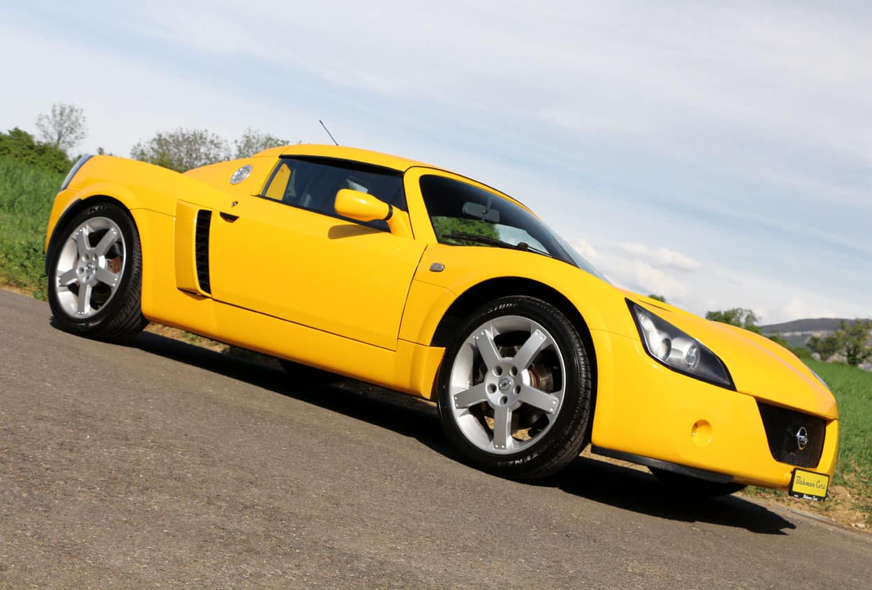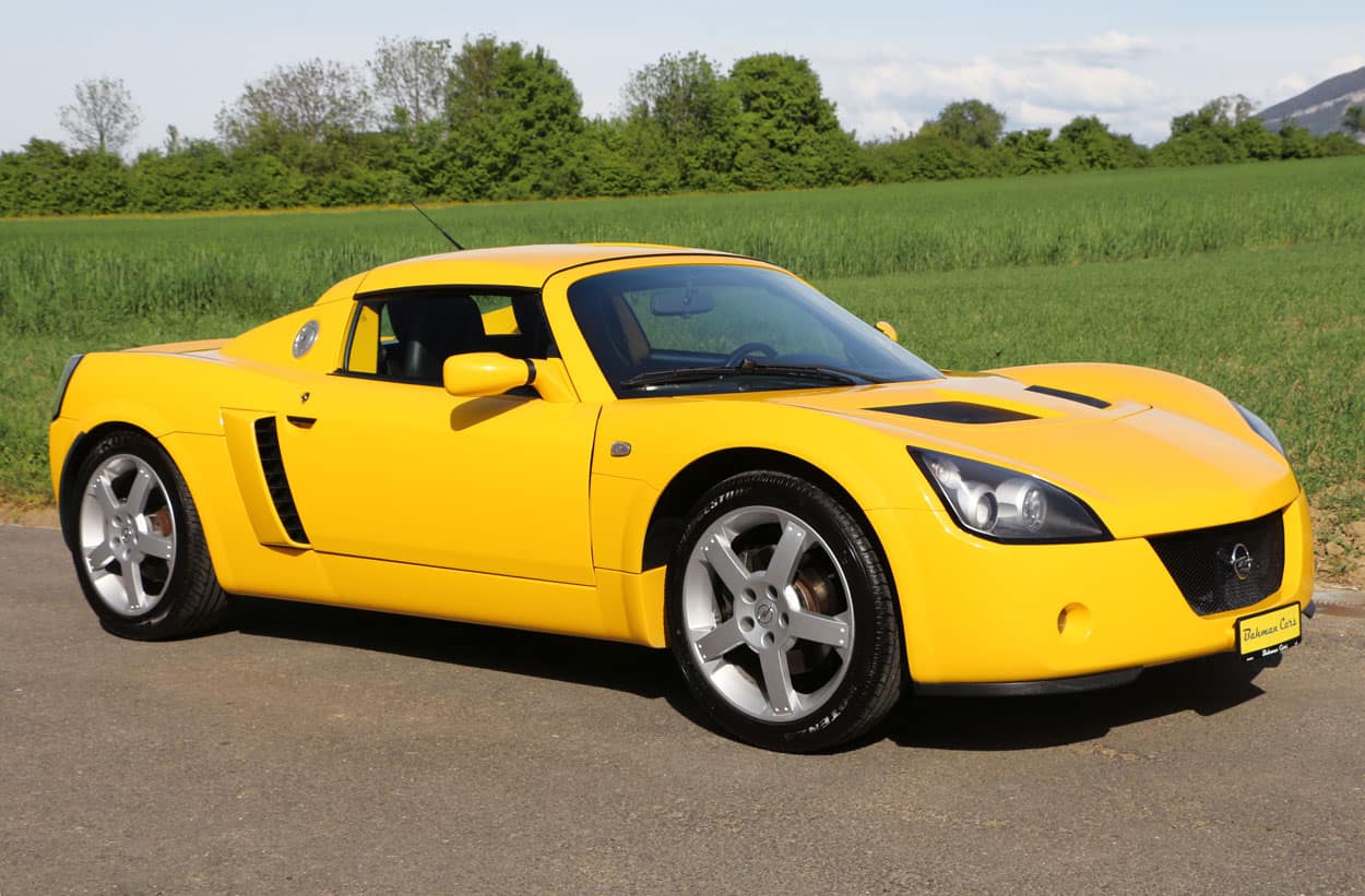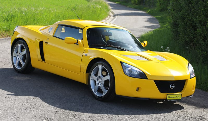 Superbe Opel Speedster, véhicule CH en superbe état, rare et recherché, produite à 7’207 exemplaires. Véritable sportive ultra légère avec châssis aluminium Lotus et seulement 870 kg sur la balance, offrant des sensations de conduite pures et directes. Couleur « Brillant Yellow », avec intérieur noir, combinaison racée. Moteur vif, boîte manuelle précise, comportement exceptionnel et plaisir de conduite garanti. Historique complet, documentation d’origine à disposition, grand service effectué, expertisée du jour. Une icône du plaisir analogique, prête à rouler et à procurer des émotions brutes, à un prix très attractif !